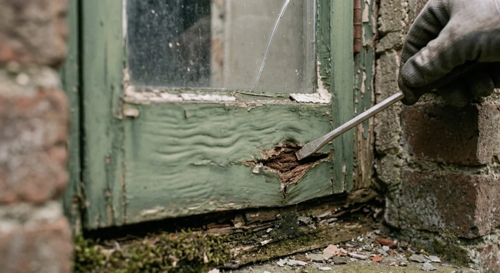 Pro-Tip: Use a small screwdriver, awl, or pocketknife to press into the wood at the joints of a window. If the tool easily sinks in as if you are pressing into butter or balsa wood, the wood is decayed from within. The wood should feel solid; therefore, you should provide pressure against the surface and the tool should remain firm.