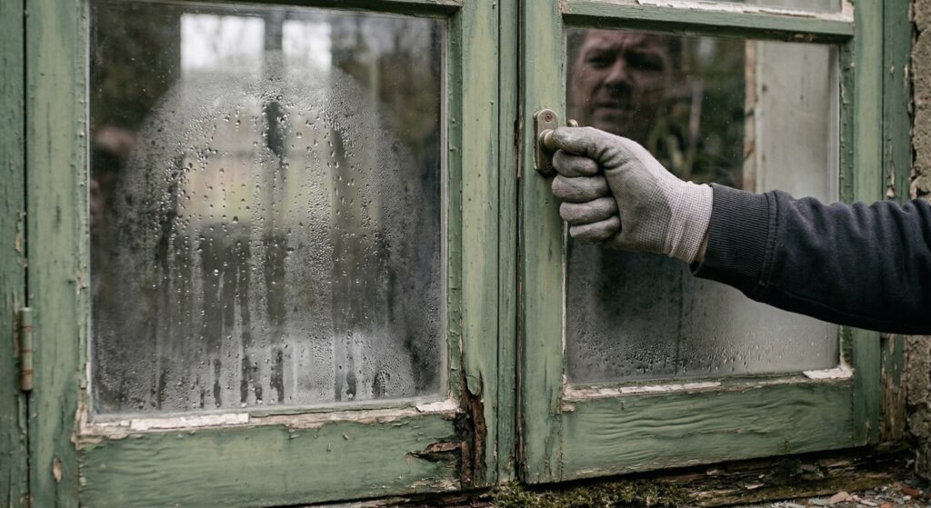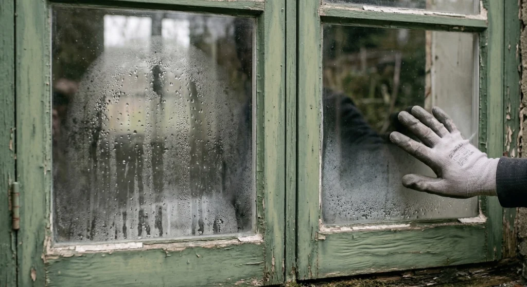 Do you see fog or moisture droplets trapped inside the double-glazing that you can’t wipe away? This indicates that the seal of the unit has failed. If condensation remains in the space, moisture will remain and cause accelerated internal deterioration in the wood of the window frame.